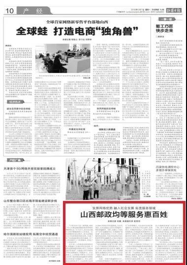 目前,山西郵政已經(jīng)形成了公司黨組對郵政普遍服務(wù)和特殊服務(wù)工作全面負責,一個牽頭部門、兩個執(zhí)行部門、四個保障部門、四個支撐部門和一個監(jiān)督部門的普遍服務(wù)運營機制,確保普遍服務(wù)工作的落實橫到邊、豎到底。