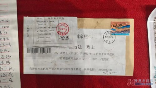 這是一封尋找烈士家屬的信件。“這封信的主人是公培法烈士?!蓖醭蓤F(tuán)回憶道,“我們投遞了三天,一直沒投遞下去,地址是建國前的地址,按照規(guī)定我們可以退回去,但這是一封烈士的信,是一封不同尋常的信?!闭沁@份責(zé)任感,讓他踏上了為烈士尋親的漫漫征程。