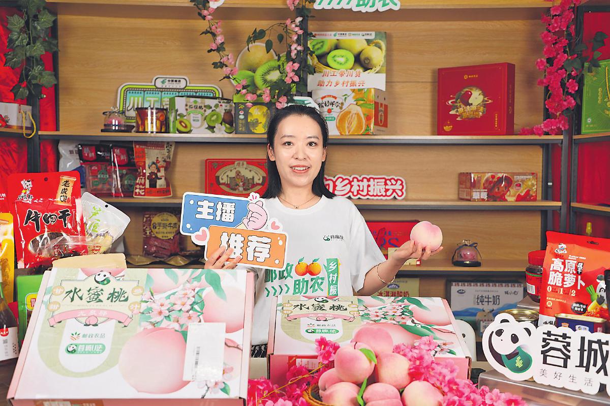 “龍泉水蜜桃汁水豐沛、口感香甜,每一口都像在品嘗夏天!”6月20日,在龍泉驛區(qū)農(nóng)業(yè)農(nóng)村局與山泉鎮(zhèn)政府聯(lián)合主辦的特色農(nóng)產(chǎn)品展銷活動(dòng)中,郵政員工布展搭景,通過直播推銷龍泉水蜜桃,引來果農(nóng)的圍觀,同時(shí)也收獲了大量網(wǎng)友的點(diǎn)贊與訂單。自水蜜桃大量上市以來,成都郵政加大助銷力度,頻繁參與展銷推介會(huì),為龍泉水蜜桃傾情代言、直播帶貨。