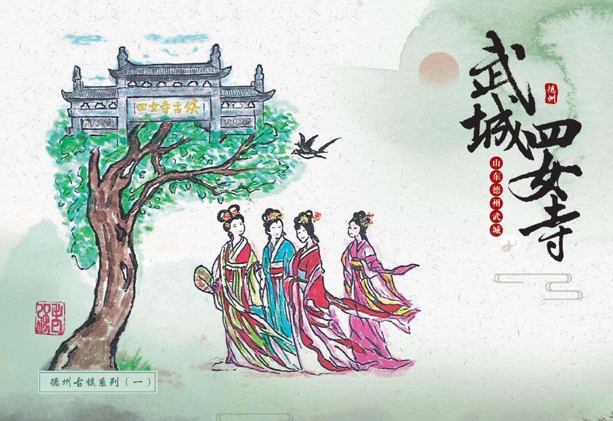 此次首發(fā)的文創(chuàng)產(chǎn)品涵蓋郵資封、明信片、郵資機(jī)宣傳戳及主題宣傳戳四大類(lèi),每一件都浸潤(rùn)著四女寺的文化基因。其中,“四女”郵資封(右上圖)以工筆重彩呈現(xiàn)經(jīng)典場(chǎng)景:畫(huà)面中四位女子于槐樹(shù)下漫步,旁側(cè)牌坊古樸,飛鳥(niǎo)點(diǎn)綴天際,還原“四女侍親,栽槐立誓”的民間傳說(shuō),四女常伴樹(shù)側(cè),行孝事、話桑麻,樹(shù)與人相襯成景,演繹著傳統(tǒng)孝道的溫度,讓古老美德在時(shí)光里熠熠生輝,供后人感懷、傳揚(yáng);而“四女寺水利樞紐”明信片(右下圖)則通過(guò)航拍視角與細(xì)節(jié)特寫(xiě)的結(jié)合,展現(xiàn)這座黃河下游重要水利工程的宏偉氣勢(shì)——堤壩蜿蜒如巨龍伏波,閘門(mén)啟閉間盡顯古人治水的智慧結(jié)晶,讓現(xiàn)代觀者得以觸摸歷史的溫度。