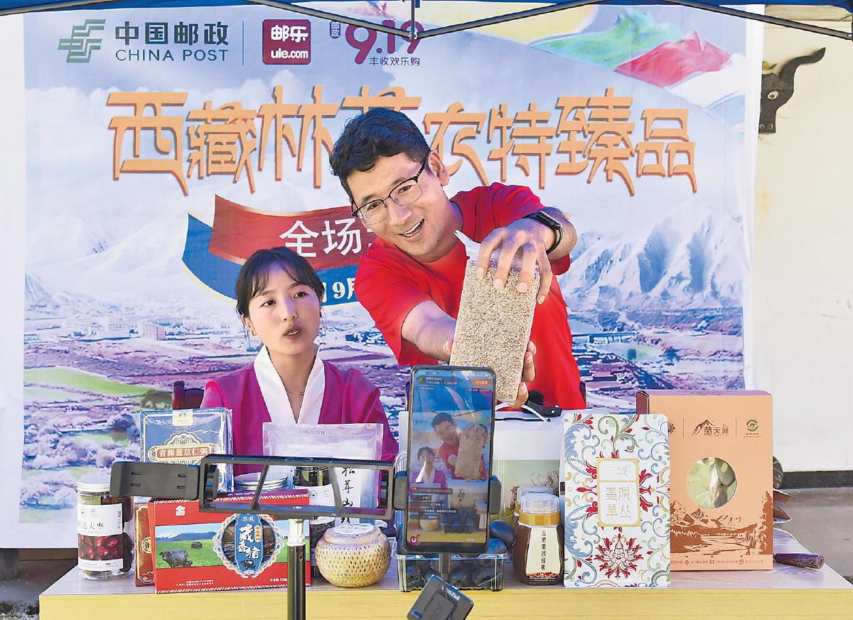 林芝市郵政分公司開展墨脫紅米等農(nóng)特產(chǎn)品溯源直播,讓藏品“郵全國”。