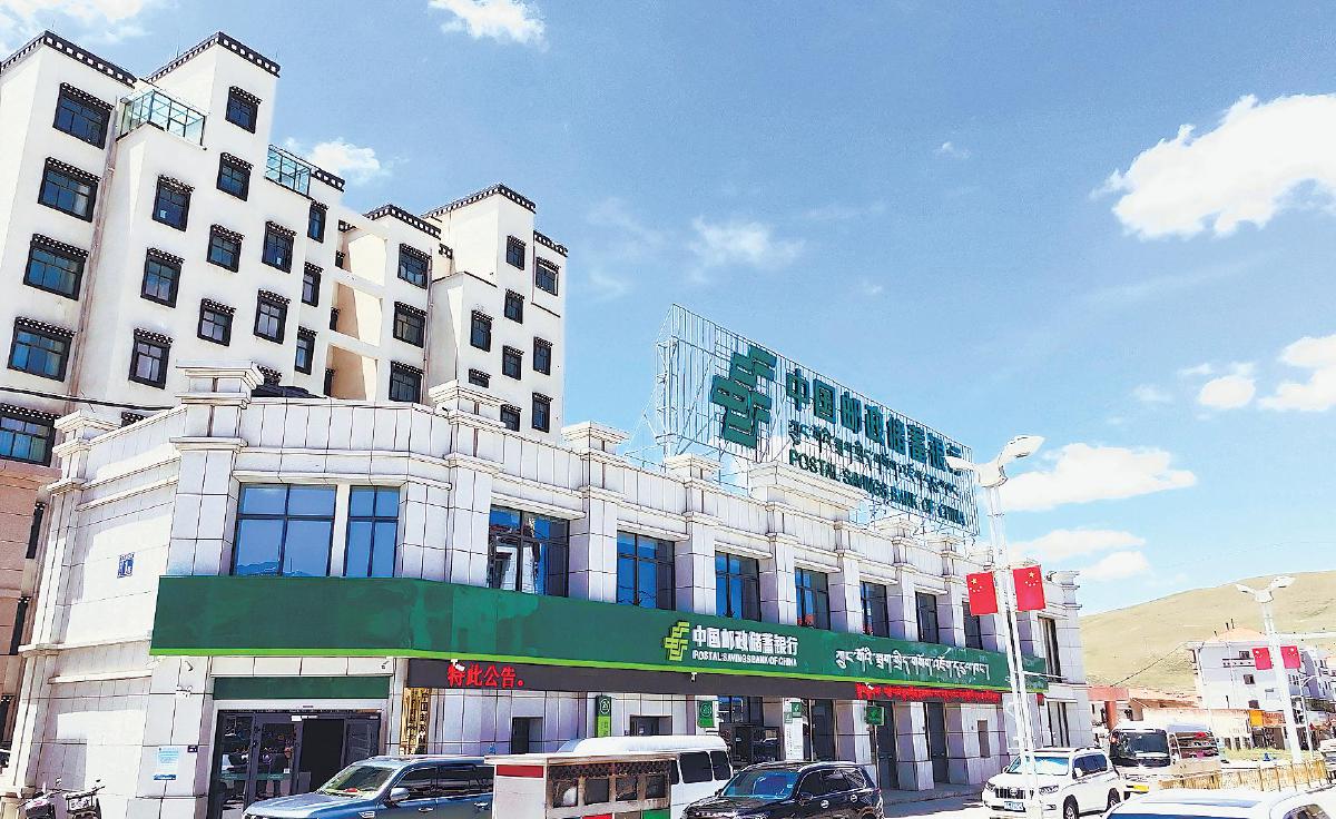 郵儲銀行西藏自治區(qū)分行在7個地市均設(shè)置自營網(wǎng)點。這是海拔最高的那曲支行外景。