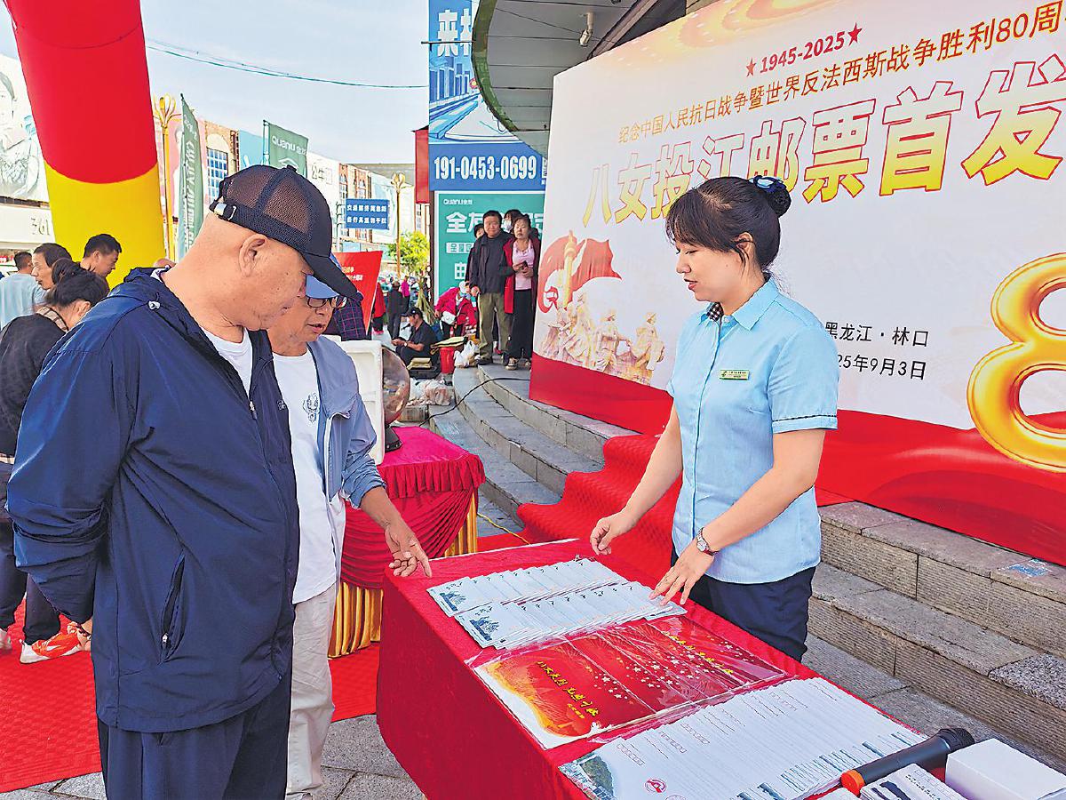 “八女投江”英雄事跡發(fā)生地——黑龍江省林口縣隆重舉行抗戰(zhàn)勝利80周年紀念郵票發(fā)行儀式,向舍生取義的巾幗英雄致敬?!醪苡詈健z影報道
