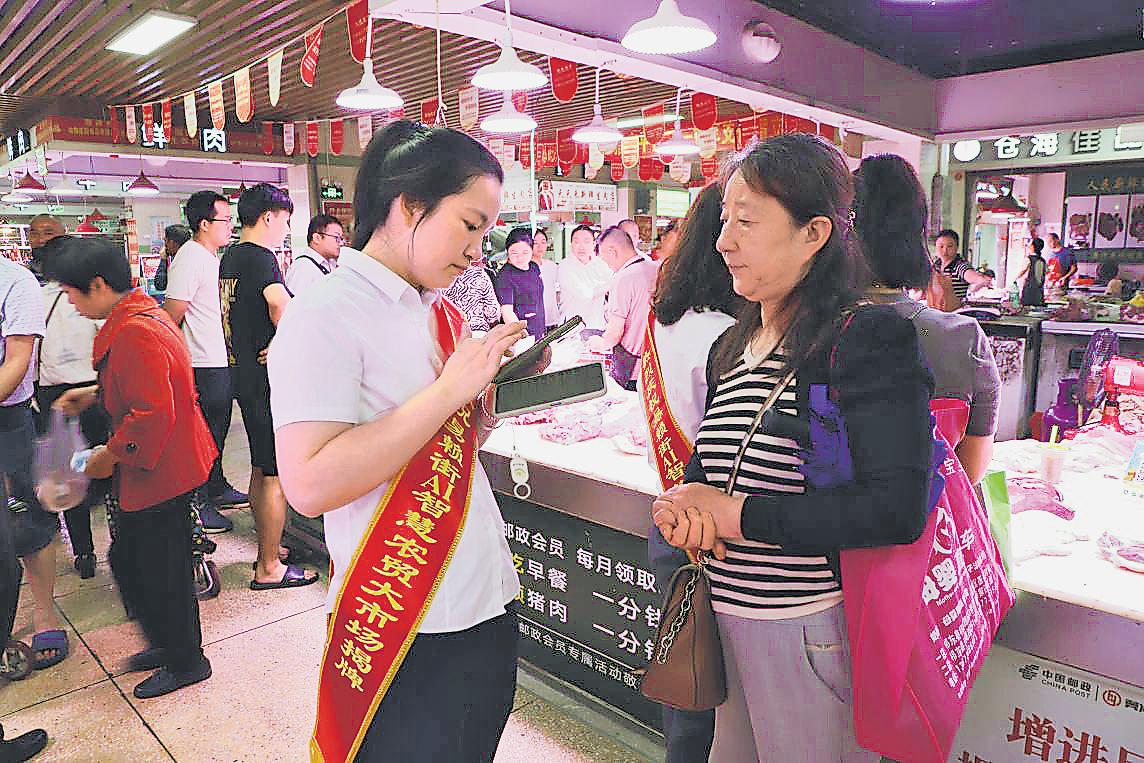 “以前買肉總擔心不夠秤,現(xiàn)在掃一下這個AI公平秤的二維碼,不僅能看到重量,連肉的產(chǎn)地、檢測報告都一目了然,讓人太放心了!”在衡陽市易賴街AI智慧農(nóng)貿(mào)市場,市民張阿姨拿著剛買的排骨,對著智能設備熟練操作著。這座建于2002年的農(nóng)貿(mào)市場,如今已成為衡陽市智慧民生建設的標桿——650余個攤位全部接入郵政智慧農(nóng)貿(mào)管理系統(tǒng),22臺AI電子公平秤實現(xiàn)全覆蓋,123戶商戶中有116戶使用郵政收單碼牌。