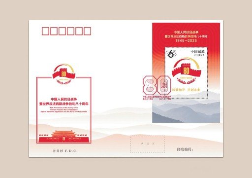 圖為《中國人民抗日戰(zhàn)爭暨世界反法西斯戰(zhàn)爭勝利八十周年》首日封和小型張首日封。(此為效果圖,請以實(shí)際發(fā)行為準(zhǔn))