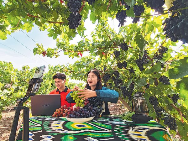 “葡萄進(jìn)入成熟期以來(lái),兩周時(shí)間我們已進(jìn)行5場(chǎng)直播,還聯(lián)系當(dāng)?shù)亍W(wǎng)紅’,在其直播間上架鏈接,以進(jìn)一步提升產(chǎn)品的知名度?!币翆幙h分公司副總經(jīng)理佟巖軍介紹說(shuō)。