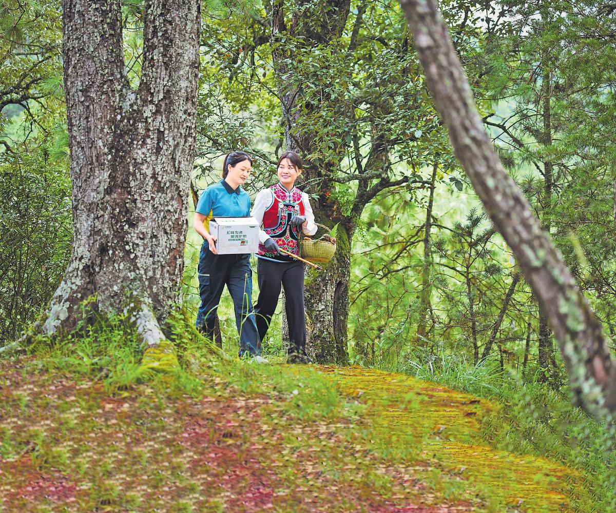9月17日清晨,楚雄州南華縣郵政分公司員工隨菌農(nóng)上山采摘松茸,實(shí)現(xiàn)林下至郵路無縫銜接。