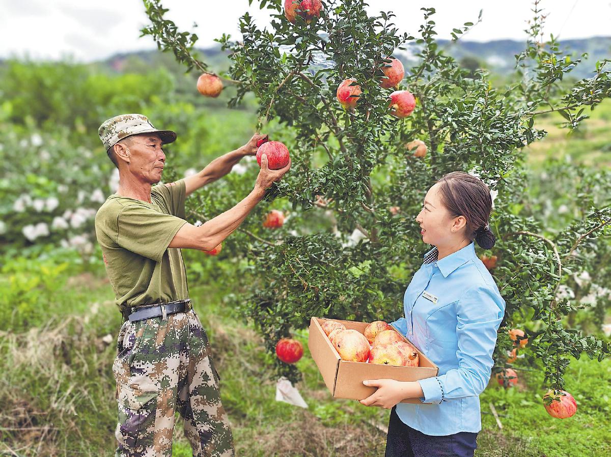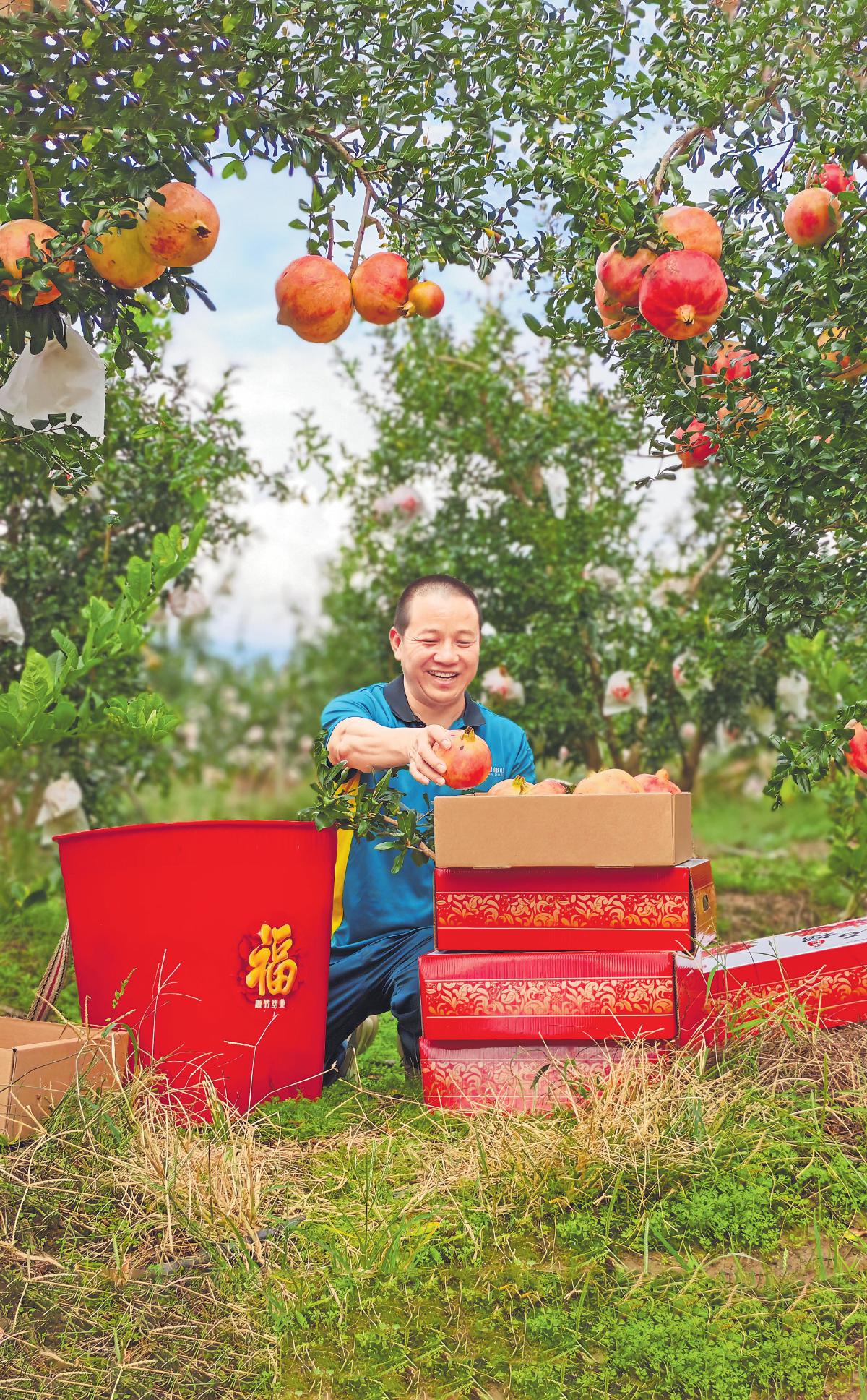 采摘下來的石榴經(jīng)人工分揀、剔除瑕疵后裝入郵政標(biāo)準(zhǔn)箱。
