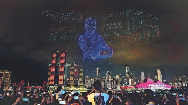 10月4日20時(shí)30分,重慶市南濱路上空,一場以第56屆世界郵政日為主題的無人機(jī)燈光秀璀璨上演。數(shù)千架無人機(jī)以天為幕,在長江上空編織出郵遞員風(fēng)雨無阻、使命必達(dá),郵政金融員工溫馨服務(wù)、連接美好以及重慶地標(biāo)明信片詮釋山河情誼的影像?,F(xiàn)場,來自全國各地的游客及重慶市民駐足觀看,紛紛用手機(jī)拍下這精彩瞬間。孩子們指著天空歡呼:“看,天上有郵遞員在飛!”這場科技與溫情交融的視覺盛宴,展現(xiàn)了中國郵政的現(xiàn)代化形象,讓群眾在節(jié)日的歡樂中感受到郵政服務(wù)的溫度與堅(jiān)守。