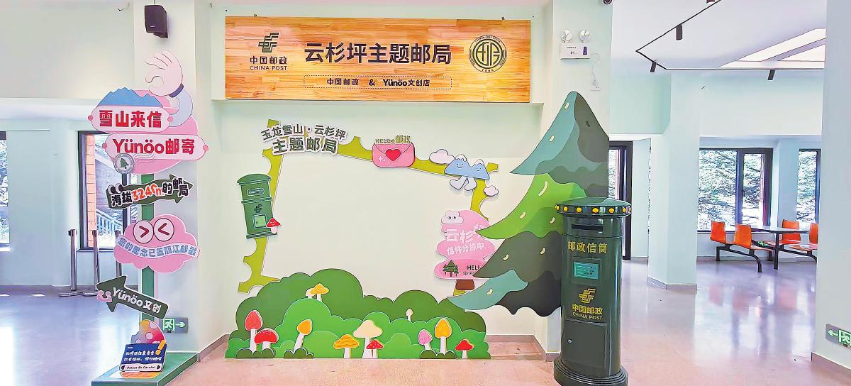 云南省麗江市玉龍雪山云杉坪主題郵局于今年9月12日亮相后,就吸引諸多游客到訪,國(guó)慶中秋假期更是人流如織。主題郵局宛如一顆璀璨的明珠,鑲嵌在海拔3240米的云杉坪索道下部站,背靠著巍峨壯麗的玉龍十三峰,仿佛雪山忠誠(chéng)的守護(hù)者;面朝繁花似錦的高山草甸與靜謐神秘的原始云杉林,宛如置身一幅絕美的畫卷之中。