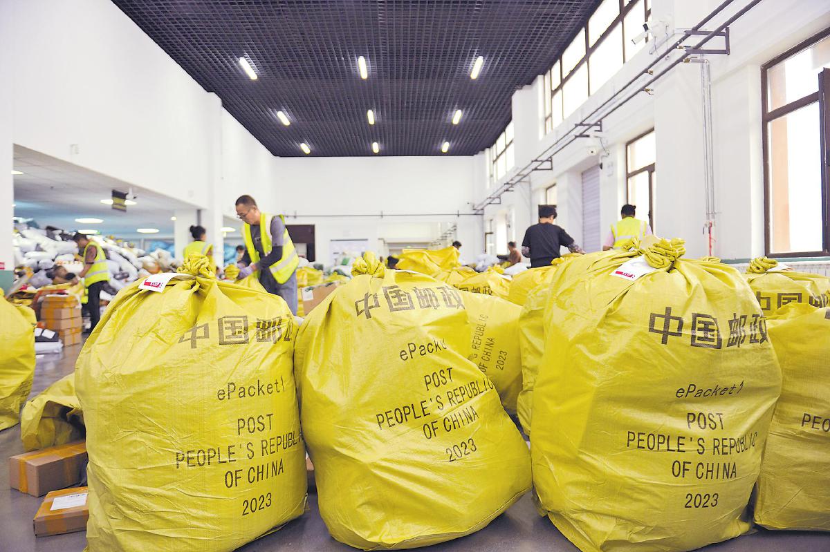 來自全國的跨境電商包裹,通過琿春國際郵件互換局通關發(fā)往俄羅斯。