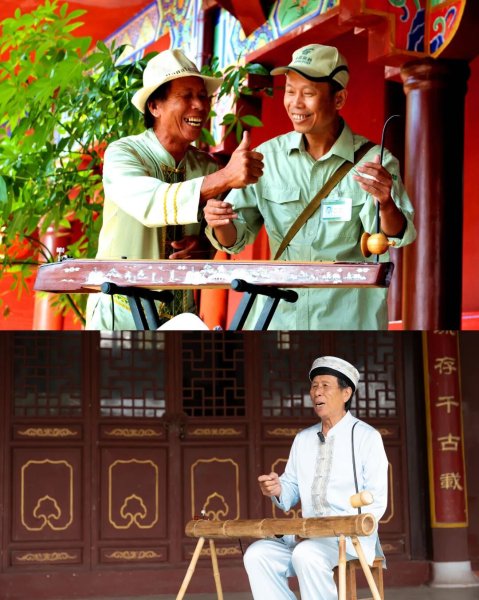 上圖:十年前,蘇春發(fā)(左)指導投遞員學習獨弦琴,兩人的笑容格外燦爛