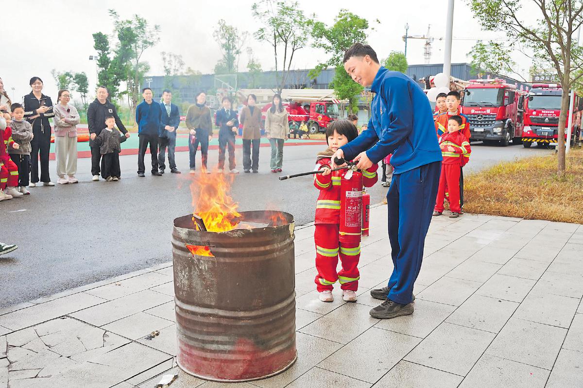活動(dòng)現(xiàn)場,孩子們?cè)谙绬T的悉心指導(dǎo)與保護(hù)下,穿起消防服、戴上頭盔,變身神氣十足的“小小消防員”。著裝完畢,孩子們?cè)谙绬T和郵政員工的帶領(lǐng)下有序參觀了消防基地。他們仔細(xì)觀察每一件消防設(shè)備,認(rèn)真聆聽消防員的詳細(xì)講解,眼里閃爍著求知的光芒。在消防技能實(shí)操環(huán)節(jié),孩子們手持滅火器,全神貫注地學(xué)習(xí)提、拔、握、壓的操作要領(lǐng),并在消防員的指導(dǎo)下,勇敢地對(duì)準(zhǔn)模擬火源進(jìn)行噴射,親身體驗(yàn)滅火過程。