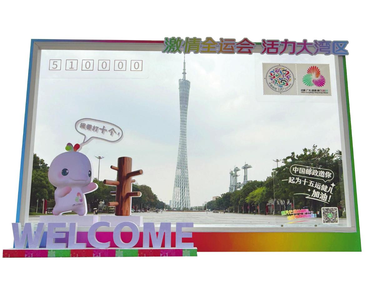 設(shè)立在廣州塔廣場(chǎng)的“全運(yùn)郵框”,供市民和游客拍照打卡。