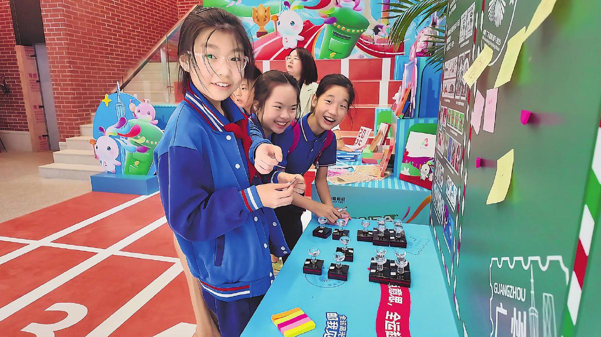 在全運(yùn)快閃郵局,小朋友們?cè)谏w章打卡。