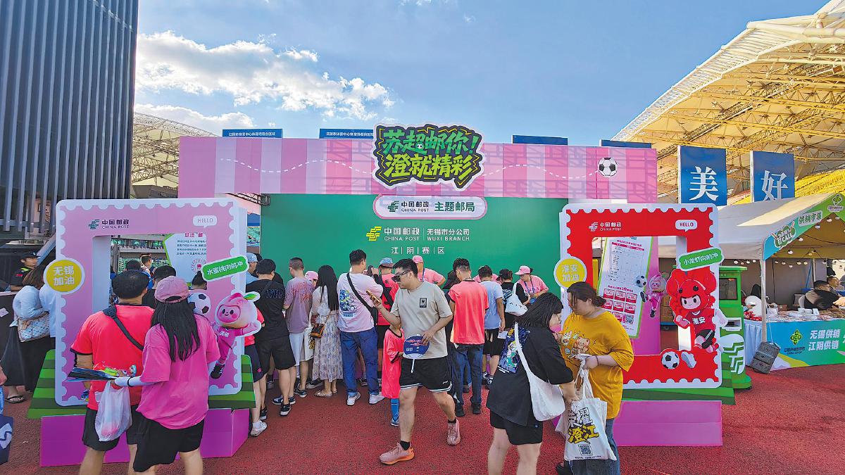 無錫市分公司在“蘇超”江陰賽區(qū)比賽現(xiàn)場(chǎng)設(shè)置的臨時(shí)郵局大受歡迎?! 觞S棟粱 攝