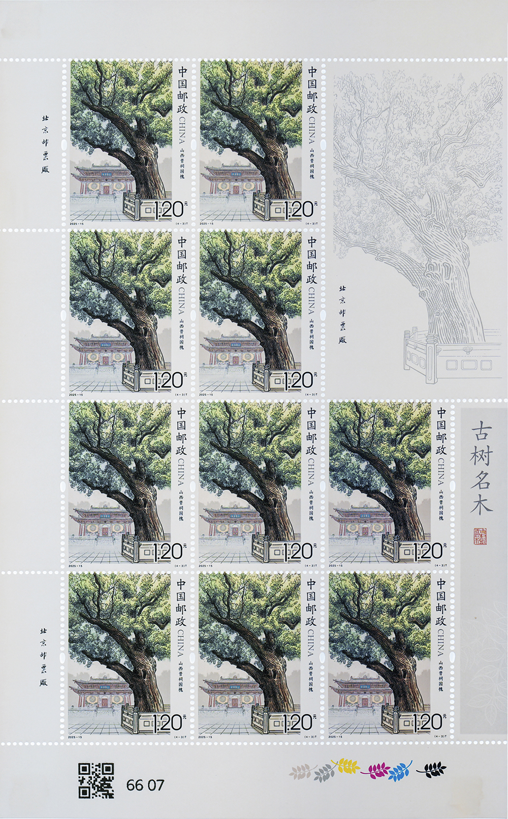 中國(guó)郵政定于2025年8月15日發(fā)行《古樹(shù)名木》特種郵票1套4枚。詳情如下: