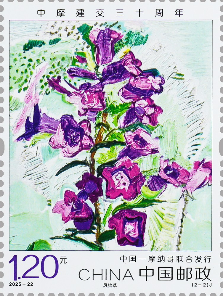 中國郵政定于2025年10月15日發(fā)行《中摩建交三十周年》紀(jì)念郵票1套2枚,郵票圖案名稱為:春蘭、風(fēng)鈴草。全套郵票面值2.40元,計(jì)劃發(fā)行數(shù)量為450萬套。